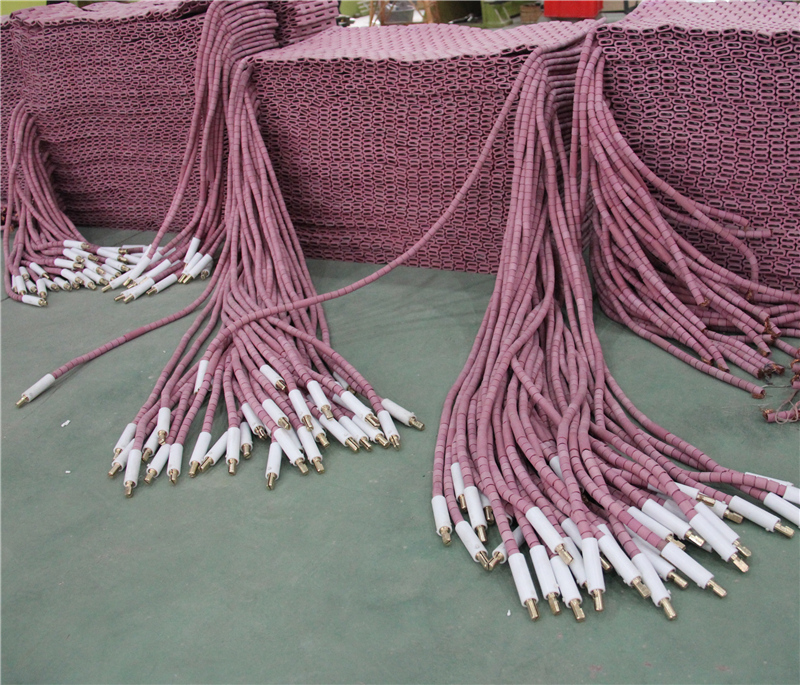 由耐高温多股优质电热丝和高强度,高耐温的瓷件按特殊工艺要求编接而成,在其长度方向有任意弯曲特性,可广泛用于各种工业设备、工件的现场热处理,各种金属容器,管道的干燥,加热升温,各种模头,模具的高温外加热等场合。